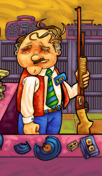 Wow. I was one dumb kid. Either that, or Satan bought the deed to Kmart and decided to make it the Annex to Hell. It was truly horrific. The place was dank, decrepit, and totally devoid of the charm that once captured my heart. To top it off, the place was overloaded with useless junk. So much so that someone decided to shrink the aisle space to five feet wide. An obese couple went down aisle ten for milk. A half-hour later, they had to be removed by the fire department with the Jaws of Life. The employees of Hell's Annex didn't help either. I haven't seen so many drooling, brainless twits since the wake for Dale Earnhardt. I even recognized a few of them from my childhood; poor, sorry bastards. Could you imagine being born just to spend your whole life working at Kmart? It took every ounce of strength I had not to unlock the gun cabinet in the Sport Section and declare, "It's either five seconds with Smith & Wesson, or 25 more years working at Kmart! You be the judge."