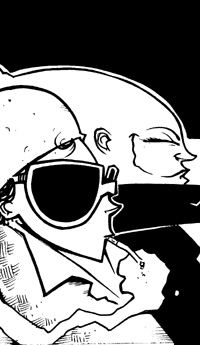 Our stay in Ohio is strictly divided between a Starbucks and the house of these weird people who have a paper called tastes like chicken (my son lives there, too). We stay with them for three days-- drinking their beer, using their beds, and making them burn fifty-million CDs for us. We feel like bums 'cause everyone there gets up at the crack of dawn, and we're glued to our bed until around noon. But they all put up with us really well.
