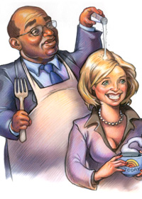 Katie Couric is paid $65 million to give her moronic opinion to a national television audience that never asked for it. I have heard her utter the phrase, "What up with that?" on more than one occasion. To respected authors, actors, and politicians, this 46-year-old white woman asks, "What up with that?" My ears are bleeding.
