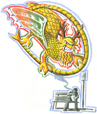 Taking another drag from his cigarette, Mark leaned back on the bus stop bench in front of the convenience store where Miners Park used to be, watching the grey smoke wind its way upward through the orange and gold of the falling leaves. He sat unmoving for a moment, as the red in the sky slowly retreated west, giving way to the deep blue of evening, before he picked up the handful of papers he'd printed out before he left home. He hadn't had a chance to read the few snippets of information he'd found on a couple of Illinois historical websites before rushing out the door on Friday, but now, as the sun sank lower towards the rooftops along Glen Carbon Road, he found some time to just sit and read about the legend of the Piasa Bird.