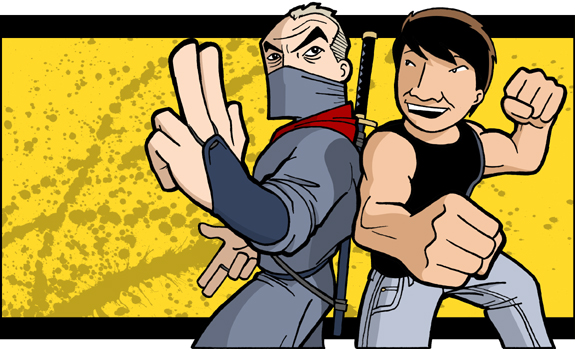 Chan chuckled, and they play-sparred for a moment. Their boyish roughhousing was interrupted by the alarm on Eddie Bourbon, Ninja to the Stars' watch.
