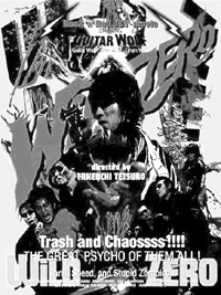 If you’re unfamiliar with Guitar Wolf (the band), Guitar Wolf (the guy) and fellow bandmates Bass Wolf and Drum Wolf (I’m not kidding), you wouldn’t know that they are Japan’s answer to the Ramones. In fact, they may actually be clones. Simply put, they are rock ‘n’ roll. Despite crap like the Beatles’ Help!, the Monkees’ Head and Spice World, the movie industry is convinced that nobody can make a film like a lobotomized pop star. However, no band has ever made a film like Wild Zero either. Director Tetsuro Takeuchi whipped up one of the best rock flicks I’ve ever seen by sticking to the four basic food groups: sex, drugs, rock ‘n’ roll and zombies. I would like to add that the phrase “one of the best rock flicks” doesn’t say a whole helluva lot (you did see Cool As Ice, didn’t you?), as plot was not one of the food groups he employed, nor was acting or budget. But the film definitely bears inspection. Ace (Masashi Endo) loves Guitar Wolf like Robert Blake loves a tall glass of water. Unfortunately, he’s not sure he has what it takes to be nearly as cool as they are (yeah, okay, he’s an idiot loser). However, when he interrupts a Mexican standoff between the band and the evil hot-pants-wearing club owner, The Captain (no, not the “Muskrat Love” guy), he nearly gets killed defending rock ‘n’ roll. Guitar Wolf makes him an honorary Guitar Wolf and gives him a special whistle for summoning the band when he’s in trouble. Suddenly, UFOs land and zombies start wandering around just when Ace falls in love with Tobio (City Chai), and he has to muster up all the courage he can to help save the world and his new love. The best part of the movie is when Ace discovers Tobio is actually a boy. The whisky-swilling, pill-popping, roughneck rocker Guitar Wolf magically appears to tell Ace that love knows no boundaries like race and gender. That’s just plain sweet. And there’s tons of CGI exploding zombie heads. Do yourself a favor and find Wild Zero and discover a rock flick that has all the exploding heads and homosexual overtones Neil Diamond’s The Jazz Singer was missing.