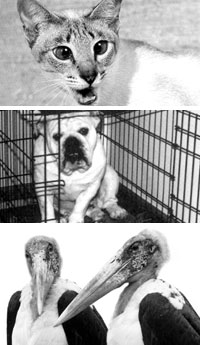 SCOOBY & SCRAPPY: Are you expecting babies anytime soon? Imagine two beautiful storks waiting for you in your front yard. Tell your kids that Scooby and Scrappy are here to bring their new little sister/brother! Storks love to deliver newborns to your front door. But these aren’t just any old storks. These are Marabou Blood Storks from Africa! It is in their nature to kill baby animals in the wild and peck their little brains out. Tell this to your kids. Say, “Hey, Lucy. Guess who’s visiting soon? The Blood Storks!” Explain to them what they do. Your kids will get a scream out of them! Blood storks are also known to peck at shiny things, like eyes. So when you pick them up at the shelter, make sure you wear sunglasses because these liver-faced mongoloids will peck out your peepers.