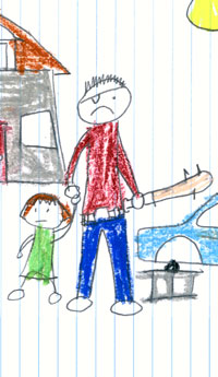 My daddy is the best daddy in the entire world. He loves me so much and he says that he's never going to let them take me away from him. I don't know who he's talking about when he says that. Maybe it's the men in suits with walkie-talkies, like in E.T.. I love my daddy so much that I decided to draw a picture of him and me. I colored the picture so that it looks really pretty, but you can't see the colors because this newspaper is in black and white because it's stupid. My daddy says that he is only going to draw pictures for them until he gets a real job. I hope he does, so we can eat something besides macaroni and cheese for dinner. I drew my daddy with an eyepatch on. That's because he had something wrong with his eye so he had a doctor do surgery on it. He got really grumpy when he had to wear the eyepatch, but I told him that he looked cute with it on and he looked like a pirate. I drew my mommy, too. I drew her kissing Uncle Jim. My mommy tells me to call him Uncle Jim, but he's not my uncle. An uncle is someone who is your mommy or daddy's brother, like my Uncle Theo. Uncle Jim is the man that my mommy lives with now. She used to live with my daddy and me, but I told my daddy that one time I saw Mommy kissing Uncle Jim. That made Mommy and Daddy get in a real big fight. The next day Mommy went to live with Uncle Jim. This made my daddy sad and he cried so hard that blood came out of his eyepatch and he had to go back to the doctor. I drew my daddy holding a bat he made. He made it by pounding some nails into the end of a normal bat. I asked him why he did that and he said that he wanted to go play baseball with Uncle Jim. I told him that was pretty dumb because then the baseball would stick to the bat if he hit it. I think he knew that it was stupid once he tried it because after he came back from playing baseball with Uncle Jim he told me not to tell anyone about it. After that we moved to Columbus. I was sad because I had to leave all my friends in Springfield, but my daddy said that we couldn't stay there anymore. He said that he would make it up to me by writing me a story about a girl named Princess who saves the world from dinosaurs. My daddy writes lots of stories. I don't like most of them because they are really boring, but I really liked the dinosaur story. He read it to me at bedtime and I liked it so much that I gave him a great big hug. He hugged me back and told me that he'd never let them take me away from him. I have the best daddy in the whole wide world.