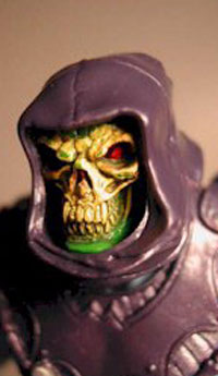 There wasn't a toy closet in the ‘80s that didn't have one of these guys. His strapping blue muscular body, defiant purple hood and frightening bony visage-- of course, I am talking about that devilish sorcerer Skeletor! Look out! He's back, and so are the rest of the He-Man characters in a newly-sculpted line. Each figure has been revamped and redesigned to cater to the elite collectors of 2000, while adhering to the same basic designs from the original ‘80s action figures. What does that mean, exactly? Skeletor is still the fucking man. He still has his trademark blue skin, purple armor and mystical ram staff of power. They’ve just been accentuated. His muscular frame is much more defined, with many small sculpted touches. Now you can gingerly and tenderly brush your fingers over Skeletor's now fully developed six-pack on those lonely Saturday nights. Oh baby, it's about damn time! His staff has also been redesigned and fully painted. It now really inspires fear in the hearts of all Eternians-- not like his predecessors tiny purple toothpick. Speaking of scary, you need to get a load of his now fiendishly sculpted and devilishly painted skull. Jesus Christ! He even has dynamic red eyes. You know, the kind that look directly into your soul and command you to burn things. Not now, Master,.. must finish article,.. will make it up to you later. I know in the past redesigned toys have been the scourge of humanity. Awful, demented pictures of revamped G.I. Joes and Beast War Transformers will forever tango in my nightmares. But Skeletor and the other newly released He-Man figures are a welcome and exciting improvement. And with a price point of $6.99 at most stores, they are begging to be purchased. Oh yeah, and Man-At-Arms finally sports a big porno ‘stache. Most impressive.